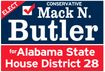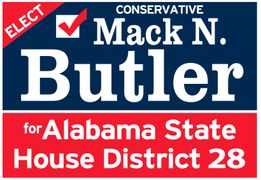 Mack began his business career at age 11 as a “paper boy” for the Gadsden Times, and he and his wife founded and run Butler Electrical Contractors and Butler Properties. Mack served two terms in the State House of Representatives as well as ten years on the Etowah County School Board. He served as Chairman of the Etowah Republican Party and served as a Trump Delegate in 2016 and 2020.
